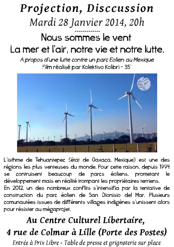 A propos d'une lutte contre un parc éolien au Mexique.