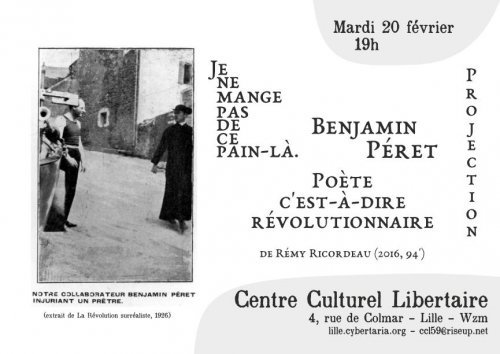 Projection du documentaire de Rémy Ricordeau, Je ne mange pas de ce pain-là. Benjamin Péret, poète c'est-à-dire révolutionnaire (2015, 95')