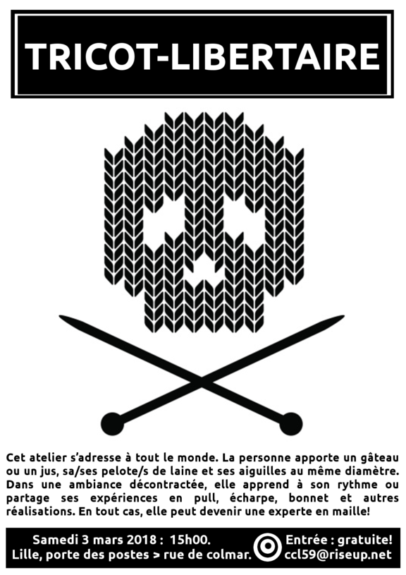 Cet atelier s'adresse à tout le monde. La personne apporte un gâteau ou un jus, sa/ses pelote/s de laine et ses aiguilles au même diamètre. Dans une ambiance décontractée, elle apprend à son rythme ou partage ses expériences en pull, écharpe, bonnet et autres réalisations. En tout cas, elle peut devenir une experte en maille !