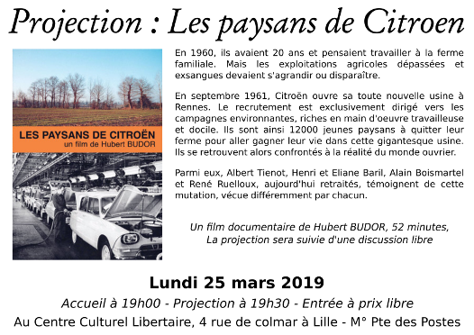 En 1960, ils avaient 20 ans et pensaient travailler à la ferme familiale. Mais les exploitations agricoles dépassées et exsangues devaient s'agrandir ou disparaître. En septembre 1961, Citroën ouvre sa toute nouvelle usine à Rennes. Le recrutement est exclusivement dirigé vers les campagnes environnantes, riches en main d'oeuvre travailleuse et docile. Ils sont ainsi 12000 jeunes paysans à quitter leur ferme pour aller gagner leur vie dans cette gigantesque usine. Ils se retrouvent alors confrontés à la réalité du monde ouvrier. Parmi eux, Albert Tienot, Henri et Eliane Baril, Alain Boismartel et René Ruelloux, aujourd'hui retraités, témoignent de cette mutation, vécue différemment par chacun.