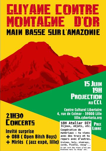 Projection : Compilation de reportages croisés, pour comprendre l'historique du projet aurifère en Guyane, depuis les années 80 jusqu'à février 2019. Avec la bénédiction de l'état, une compagnie russo-canadienne prévoit de faire la plus grande mine à ciel ouvert d'Europe, avec son lac de cyanure.