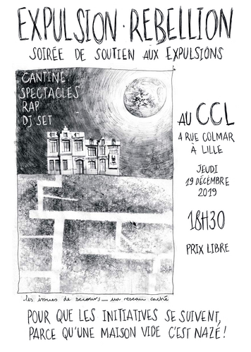 Centre Culturel Libertaire (CCL) 4 rue de Colmar à Lille Metro Porte des Postes, prendre Rue des postes puis 2ème rue à droite à l'Eglise. le CCL est à coté de l’école Viala.