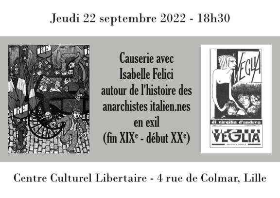 Causerie avec Isabelle Felici autour de l'histoire des anarchistes italien.nes en exil (fin XIXe - début XXe)