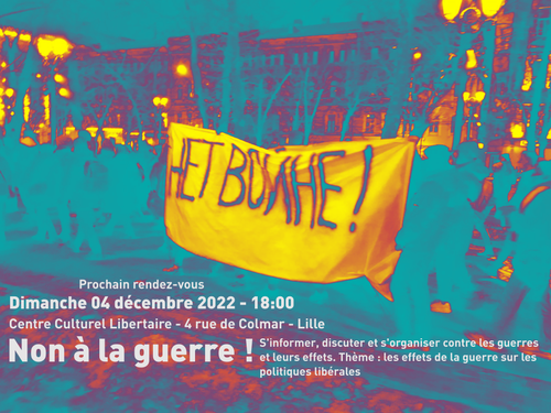 La discussion pourra porter sur les effets de la guerre sur les politiques libérales : exploitation opportuniste de cette guerre par les États, augmentation des budgets militaires et des ventes d'armes, renforcement des moyens de répression policiers et juridiques, réduction du droit à vivre sans être perpétuellement surveillé en ligne et dans la rue par les caméras, refus d'indexer les salaires sur l'inflation conduisant à un appauvrissement des salarié-es.