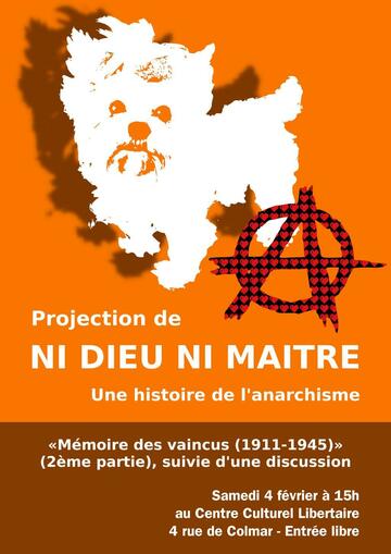 Les parties 2, 3 et 4 du documentaire seront projetées au Centre Culturel Libertaire de Lille.