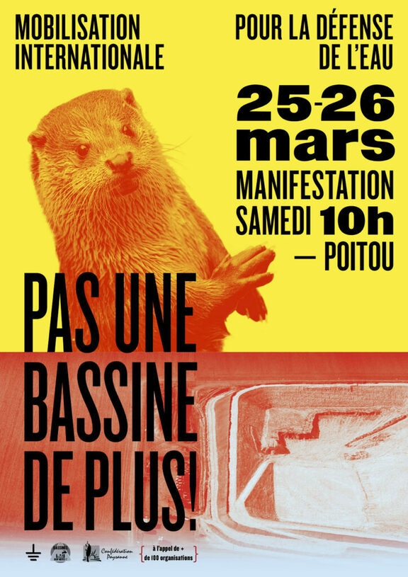 Le weekend du 25-26 mars, aura lieu une grande convergence contre les mégabassines à l'appel de Bassines Non Merci, des Soulèvements de la Terre, de la Confédération paysanne et de plein d'autres organisations en Poitou-Charentes dans l'Ouest.