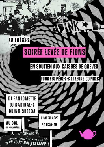 T'as encore pleuré cette semaine ? Et c'était pas à cause du 36ème visionnage de Peau d'âne ni d'une faciale consentie, mais à cause des lacrymos ? Avec la Théière, on te propose de se retrouver entre pédé·es et leur copines grévistes pour une levée de fions !