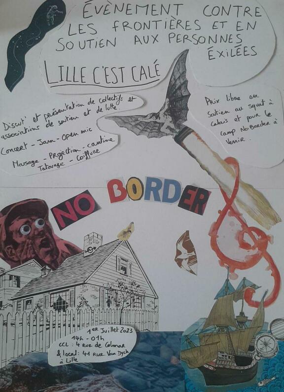 Cet événement est organisé contre cette ambiance de merde, à la place on propose une ambiance calée et libertaire contre les frontières et en soutien au squat à Calais ainsi qu'au no borders camp à venir
